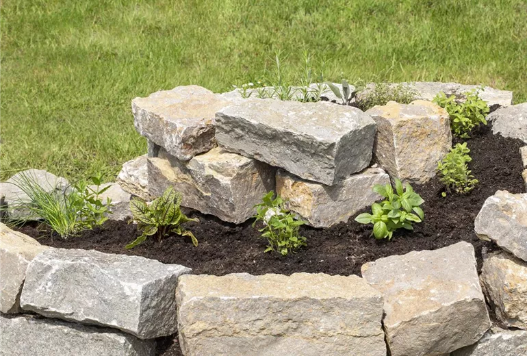 Im Fachhandel werden eine Vielzahl an Kräuterspiralen aus unterschiedlichen Materialien angeboten. Je nach Gartenstil kann man sich eine Spirale aus Holz, Kunststoff oder Metall, mit Rostlook oder in Edelstahl, aussuchen. Die klassische Kräuterschnecke ist aber aus Naturstein. Stein hat den Vorteil, dass damit die Wärme gut gespeichert werden kann, was den Pflanzen zugutekommt. Es gibt Bausätze für Kräuterspiralen, aber sie sind auch recht einfach selbst gebaut. Sie sollten an einem sonnigen Standort errichtet werden und nicht zu klein konzipiert werden. Als erstes sollte ein Fundament ausgehoben und etwa zehn Zentimeter mit Schotter aufgefüllt werden, damit sich später keine Staunässe bildet. Wenn man einen Teich möchte, sollte dieser rund 40 Zentimeter tief sein. Die Kräuterschnecke sollte sich nach Süden öffnen. Am besten geeignet ist eine Kräuterschnecke, die mit flachen Steinen aus Natursteinen errichtet wird. Hier ist es nicht nötig, die Steine mit Mörtel zu verbinden, was den Pflanzen zusätzliche Ausbreitungsmöglichkeiten bietet. Und mit etwas Glück siedeln sich in der Trockenmauer auch Eidechsen an, was wiederum zur Vielfalt im Garten beiträgt. Es gibt aber noch eine Menge anderer Möglichkeiten, um eine Kräuterschnecke in Eigenbau anzulegen. Man benötigt nur ein wenig Fantasie und handwerkliches Geschick.
