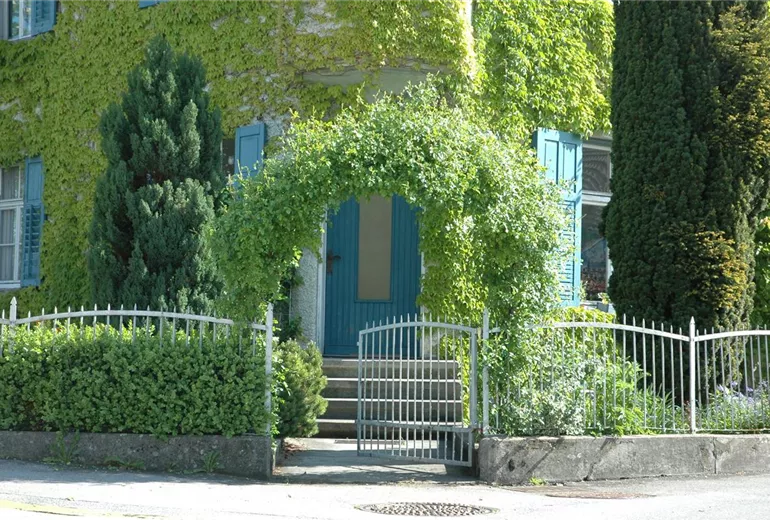 Wer sich für mehrjährige Kletterpflanzen als Sichtschutz entscheidet, sollte sich ein wenig in Geduld üben. Denn im Gegensatz zu den einjährigen Kletterpflanzen, die so schnell wachsen, dass im späten Frühjahr oftmals schon mit einem blickdichten Blättervorhang zu rechnen ist, wachsen die mehrjährigen natürlich um einiges langsamer. Sollen die Kletterpflanzen für mehrere Jahre als Sichtschutz dienen, bietet sich natürlich ein Sichtschutz aus dauerhaften Kletterpflanzen an. Denn diese gewinnen mit den Jahren an stattlichem Wuchs und Blickdichte, während die Einjährigen zwar einerseits eine abwechslungsreiche Begrünung ermöglichen, aber andererseits jedes Jahr erst einmal neu in die Höhe wachsen müssen. Dafür benötigen sie jedoch keinen Rück- oder Pflegeschnitt, was bei den mehrjährigen Kletterpflanzen durchaus oftmals der Fall ist. Zu den beliebtesten mehrjährigen Kletterpflanzen gehören unter anderem das immergrüne Geißblatt, der Blauregen und verschiedene Efeuarten. Die Kapuzinerkresse, deren schön geformten Blätter und Blüten sogar essbar sind, sowie die Feuerbohne oder die Trichterwinde zählen zu den Kletterpflanzen, die den Gärtner immer nur für ein Gartenjahr erfreuen. Doch wie auch immer sich der Gartenfreund entscheidet, Kletterpflanzen sind vielleicht der schönste Sichtschutz überhaupt.