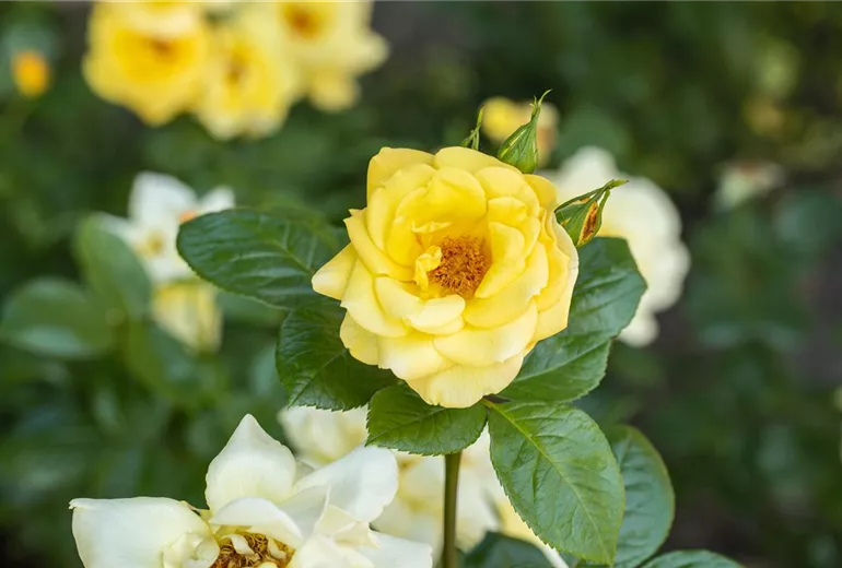 Das Schöne an Rosen ist ja, dass sie so wahnsinnig vielfältig sind. Wenn es also um die Rosenvielfalt geht, dann kennt diese fast keine Grenzen. Aber dann gibt es eine Art, die besonders heraussticht: Edelrosen. Sie erfüllen das klassische Bild der pompösen und wunderschönen Rosenblüten, die so beliebt bei ihren Fans sind. Ob in dunklem Rot als Liebesbeweis, in einem Blumenstrauß als kleine Freude, oder auch im Garten – Edelrosen haben immer ihren ganz besonderen Auftritt. Kein Wunder, denn sie sorgen im Garten für echte Highlights und zeigen, was Rosen alles drauf haben. In den unterschiedlichsten Farben und neuesten Sorten kommen die Edelrosen in der Rosenvielfalt ganz groß raus. Im Garten gepflanzt können sie sich in ein bestehendes Konzept einfügen, als Kübelpflanze auf der Terrasse punkten, oder ganz gezielt als Highlight als Solitär gesetzt werden. Wann immer Edelrosen ins Spiel kommen, bekommt jeder Garten, jeder Balkon und jede Terrasse einen ganz besonders edlen Charme, der sich mit keiner anderen Pflanze erzeugen lässt. Und das, obwohl die Rosenvielfalt neben den Duft- und Edelrosen noch so viel mehr zu bieten hat.